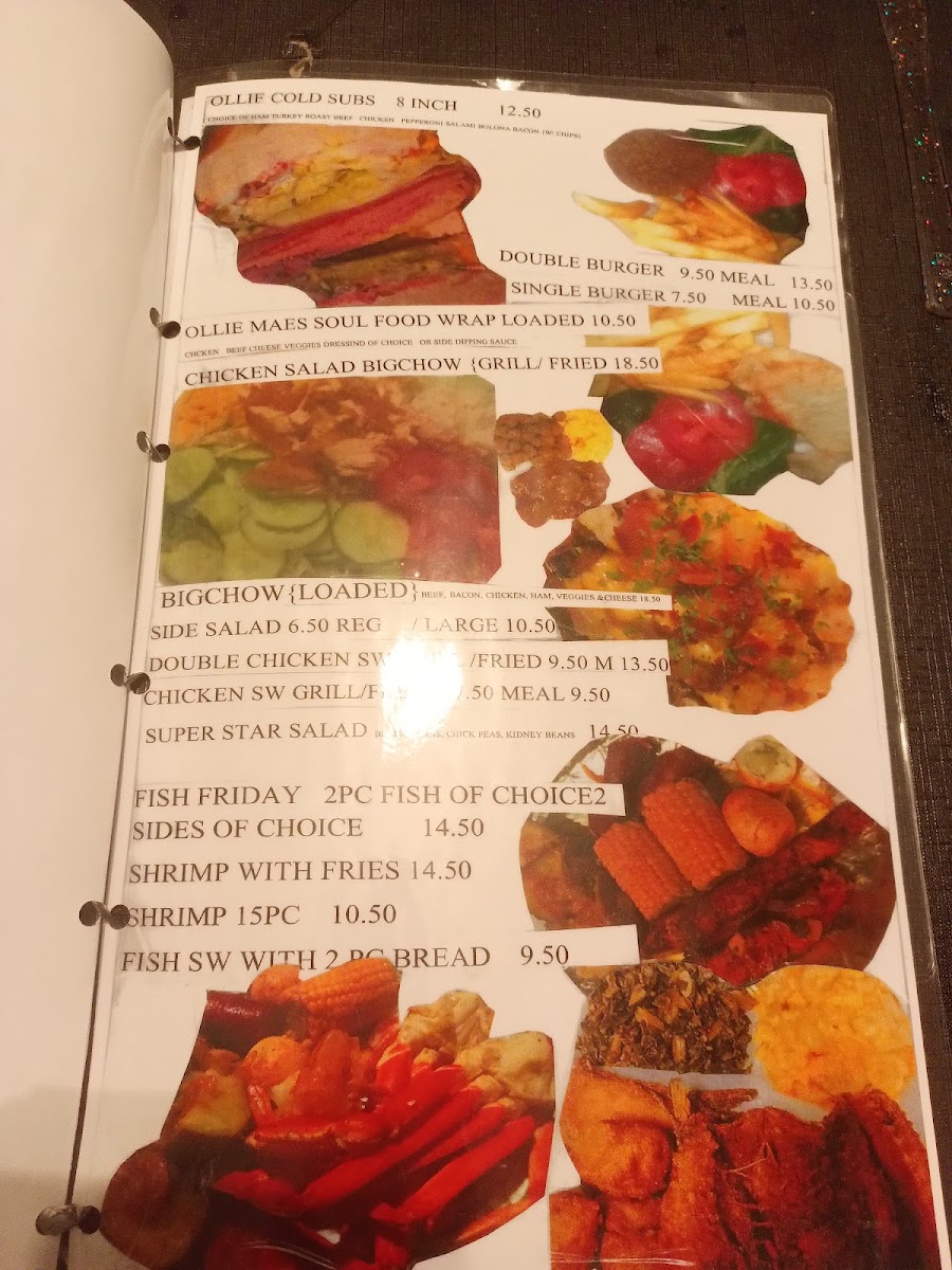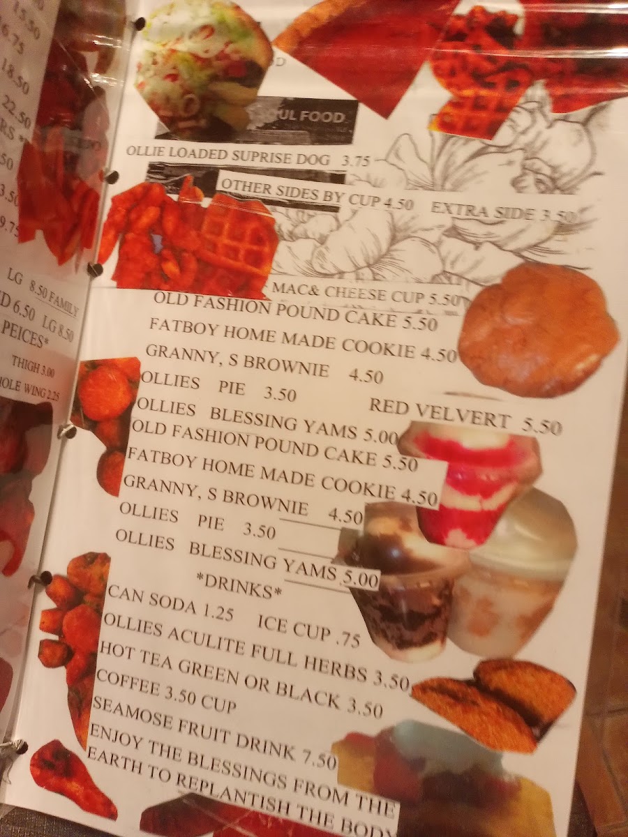 Filled with collard greens macaroni and cheese ,chicken or pork chop